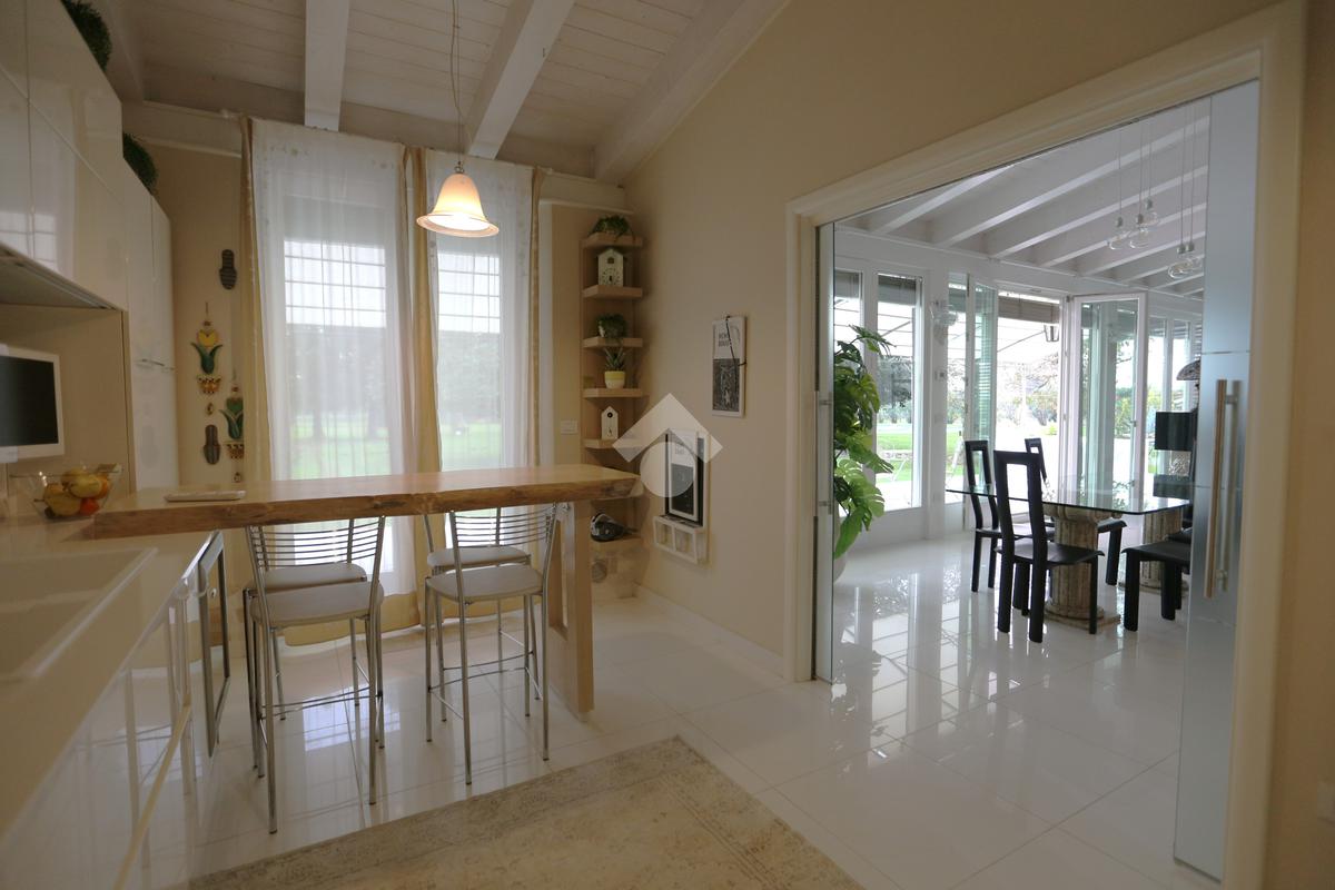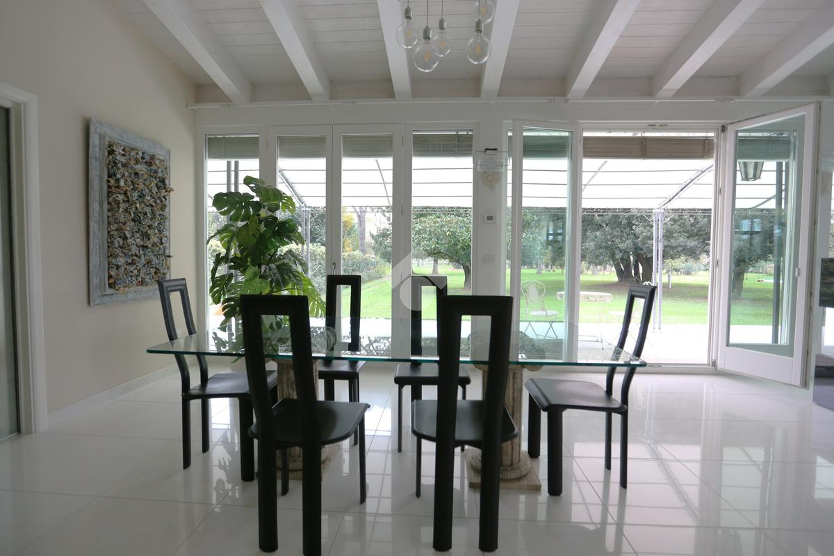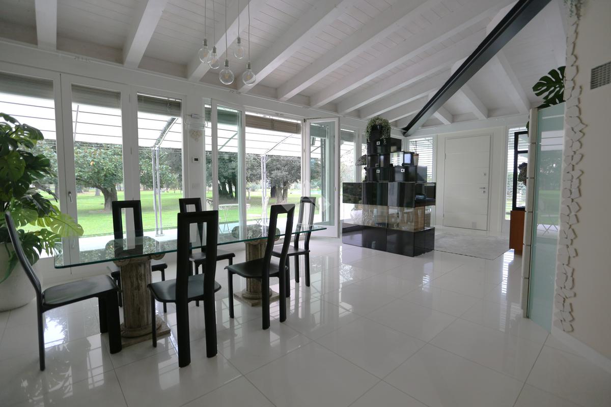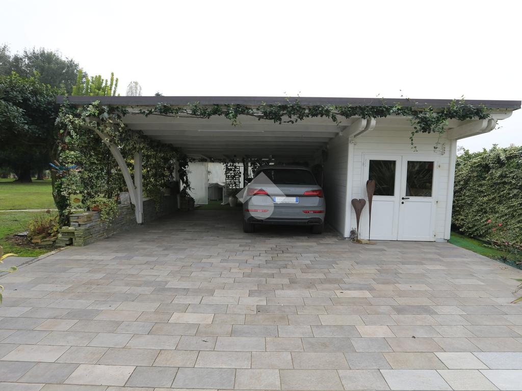 Completano l’immobile una dependance con porticato e cucina attrezzata, un magazzino e serra per ricovero attrezzi, due posti auto coperti, un posto auto scoperto e due casette mobili presenti nel parco.