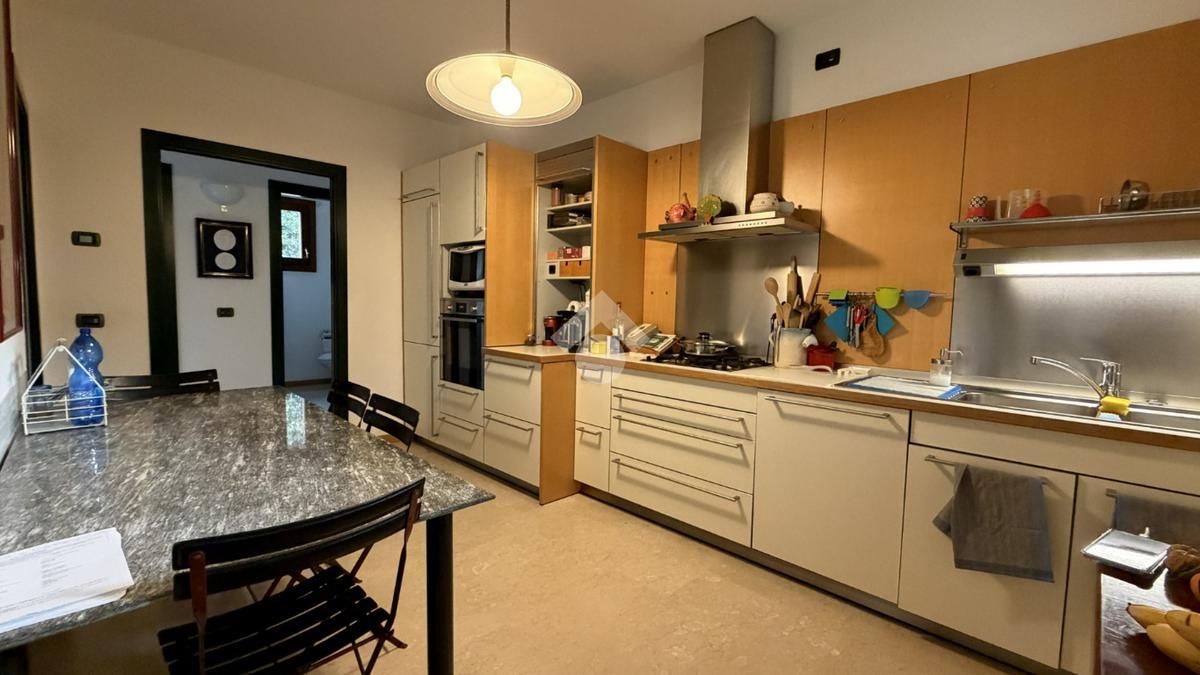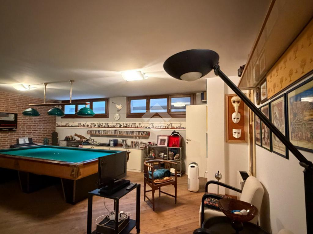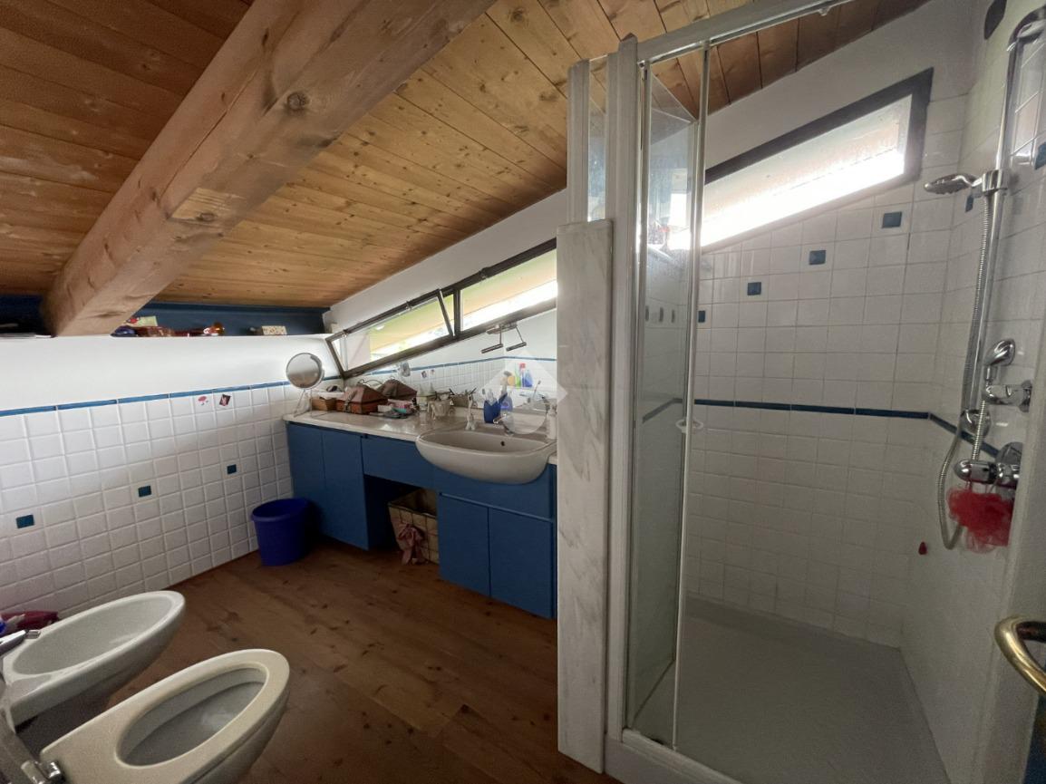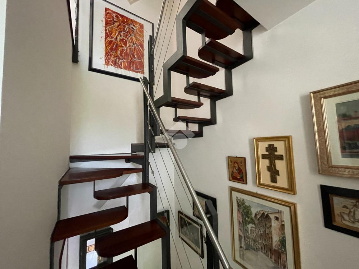 L’abitazione è disposta su quattro livelli per un totale di oltre 300mq; Il piano terra è composto da ingresso con porta blindata, spazioso soggiorno, cucina separata abitabile con dispensa e accesso al giardino, comodo guardaroba e bagno finestrato di servizio. Al primo piano troviamo la zona notte caratterizzata da una camera matrimoniale, uno studio di generose metrature in cui si possono ricavare due camere, ampio bagno finestrato con vasca idromassaggio e doccia separata ed infine a concludere il piano una veranda utilizzata come palestra. Il piano mansardato è composto da una camera matrimoniale, bagno e ulteriore spazio per uno studio; Infine, tramite scala interna o rampa per le auto si accede al piano seminterrato dove troviamo la taverna, lavanderia, zona sauna, locale caldaia e garage di 40mq.