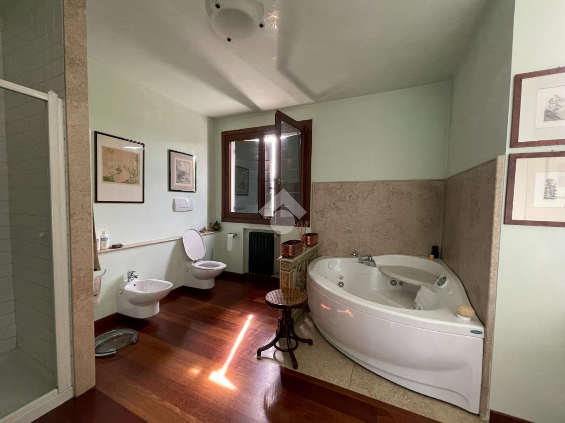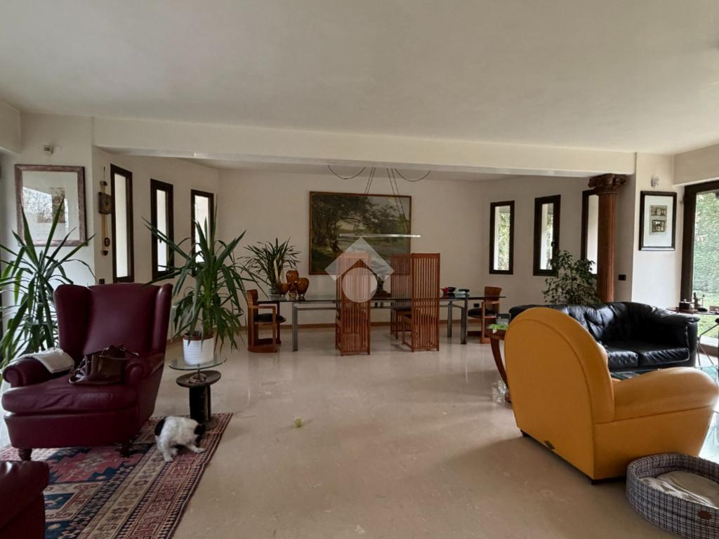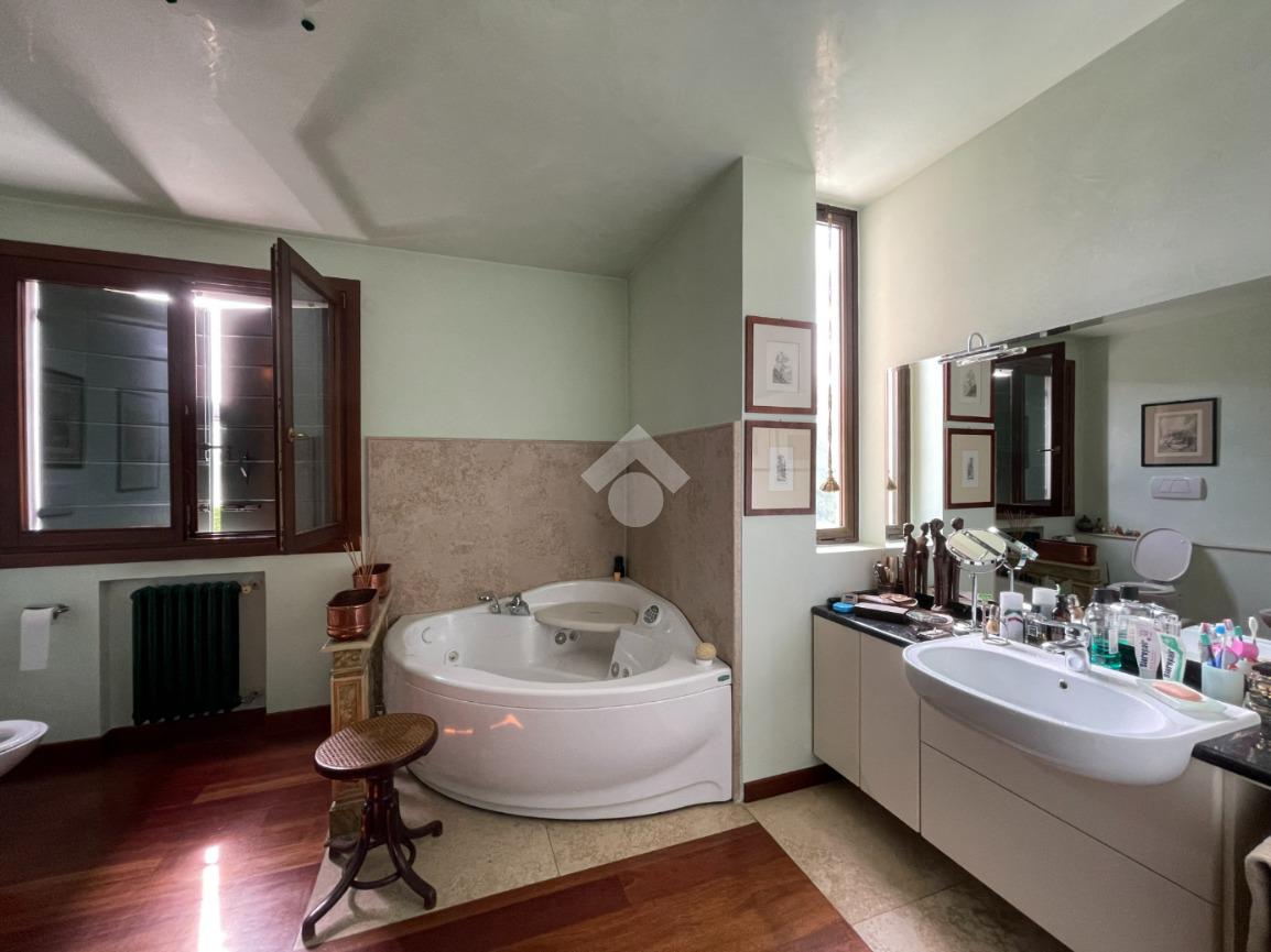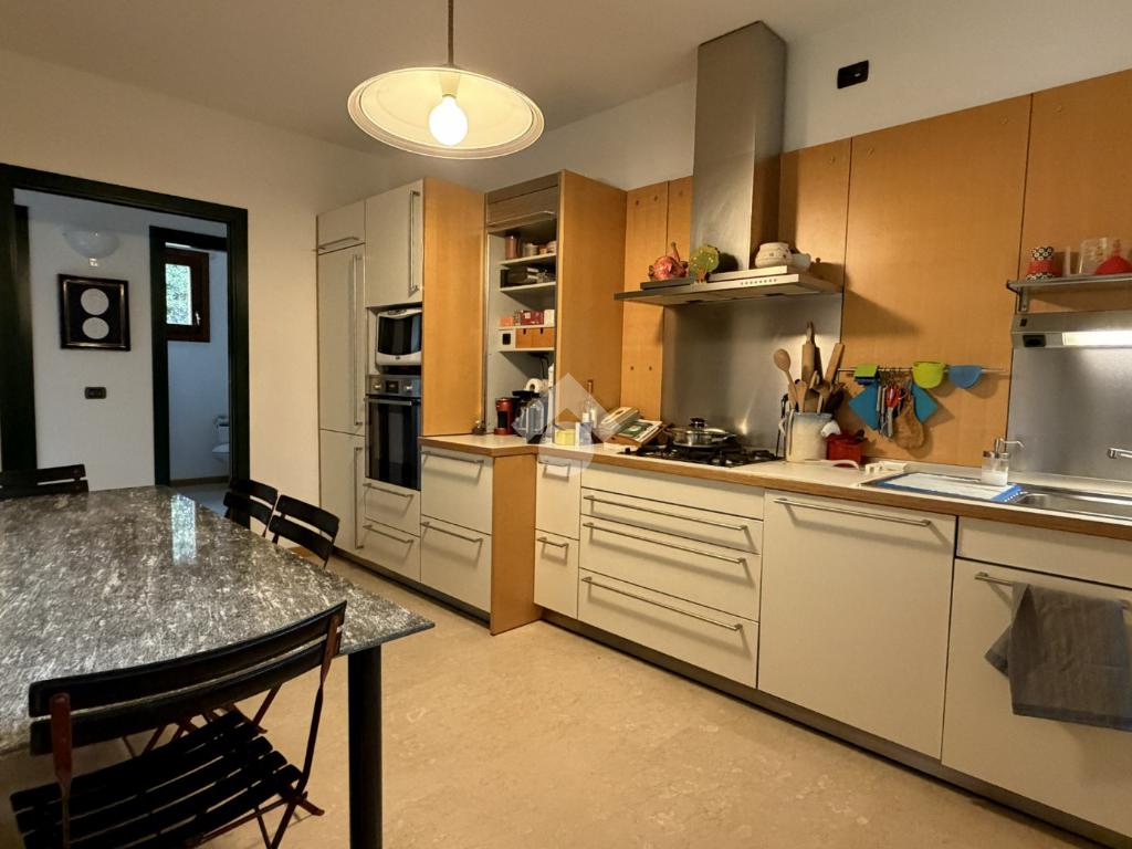 L’abitazione è disposta su quattro livelli per un totale di oltre 300mq; Il piano terra è composto da ingresso con porta blindata, spazioso soggiorno, cucina separata abitabile con dispensa e accesso al giardino, comodo guardaroba e bagno finestrato di servizio. Al primo piano troviamo la zona notte caratterizzata da una camera matrimoniale, uno studio di generose metrature in cui si possono ricavare due camere, ampio bagno finestrato con vasca idromassaggio e doccia separata ed infine a concludere il piano una veranda utilizzata come palestra. Il piano mansardato è composto da una camera matrimoniale, bagno e ulteriore spazio per uno studio; Infine, tramite scala interna o rampa per le auto si accede al piano seminterrato dove troviamo la taverna, lavanderia, zona sauna, locale caldaia e garage di 40mq.