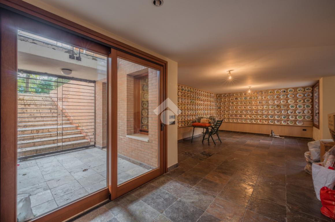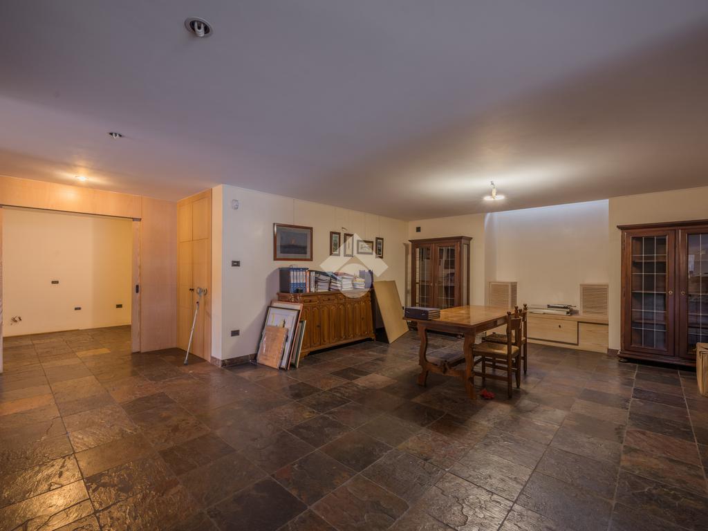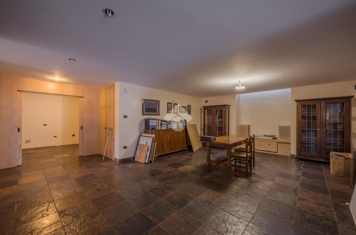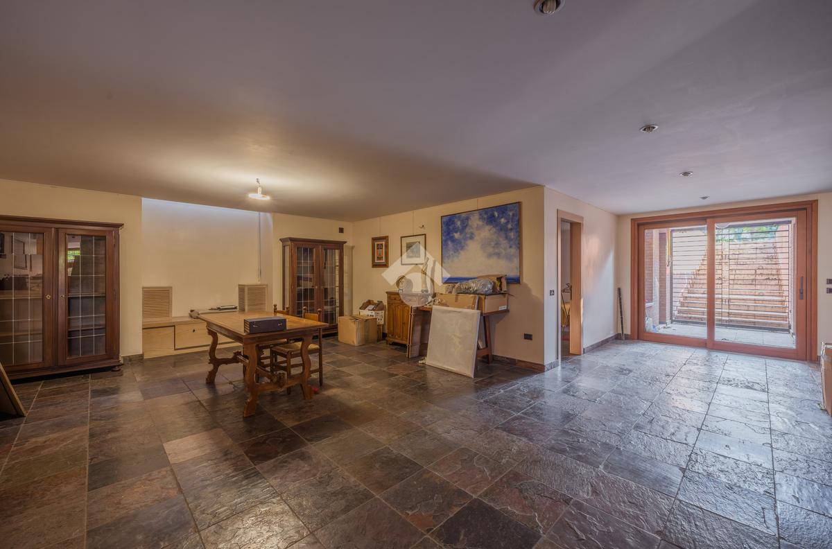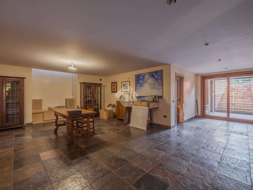 Il piano interrato è accessibile dalla scala interna dell’abitazione o da una comoda scala esterna dal giardino; È uno spazio ben progettato e luminoso, con soffitti alti, finestre e porte-finestre affacciate su uno spazio esterno che garantisce luce naturale e ventilazione. Questa zona è composta da diversi ambienti: una sala con camino, una zona pranzo, un ampio locale dove poter ricavare una zona giochi, una stanza con accesso alla lavanderia, un ambiente con predisposizione per la cucina, una cantina, il locale tecnico, un magazzino e l’accesso diretto al garage di 35 mq. Grazie alla disposizione degli spazi e alle predisposizioni già presenti, il piano si presta anche alla realizzazione di una seconda abitazione indipendente.