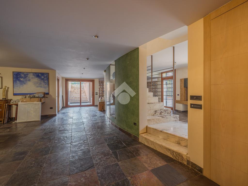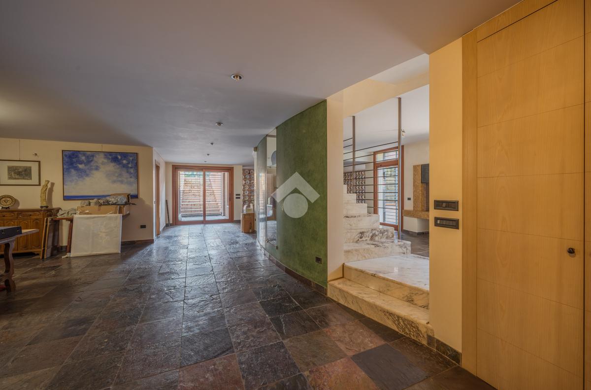 L’abitazione si sviluppa su tre livelli per un totale di 535mq; Al piano terra si trova l’ingresso che conduce a un’ampia zona giorno, suddivisa in quattro ambienti distinti: una zona living con divani, una zona pranzo, un ulteriore spazio attualmente utilizzato come area relax e studio ed infine una spaziosa cucina abitabile con isola; Sempre al piano terra troviamo inoltre una camera matrimoniale con bagno privato finestrato dotato di doccia, uno studio di generose metrature, un bagno di servizio e un ripostiglio.
